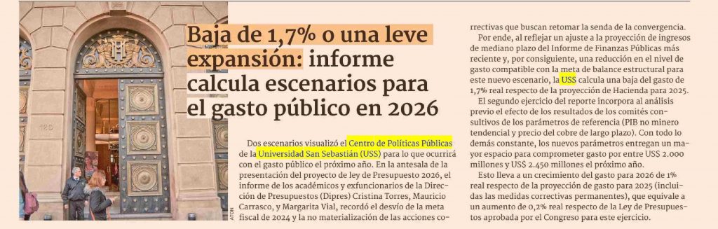 El Diario Financiero, recogió hoy 30 de septiembre el último informe del Centro de Políticas Públicas que realiza un zoom al que será el legado fiscal de la administración en curso, poniendo sobre la mesa las “Expectativas para el proyecto de ley de presupuestos 2026”.